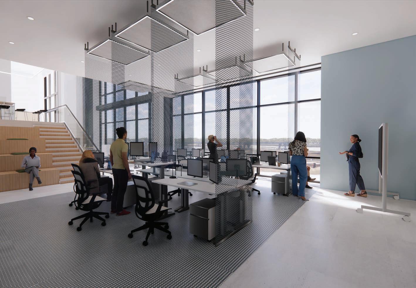 NEXT needs an office that is hybrid, while encouraging workers to come back to the office. They also expect to promote cross-generational mentoring within the office. They expect space, technology, wellbeing, lighting and acoustic privacy to be implemented into the design to fit the needs and design principles of the corporation.