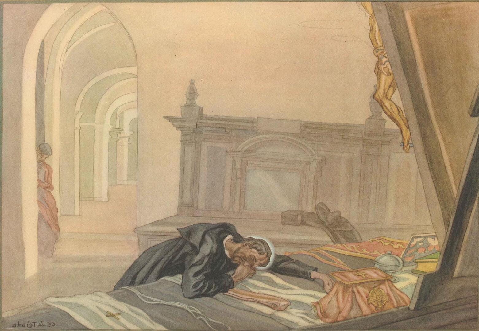 San Ignacio antes de celebrar la Eucaristía. Acuarela de: