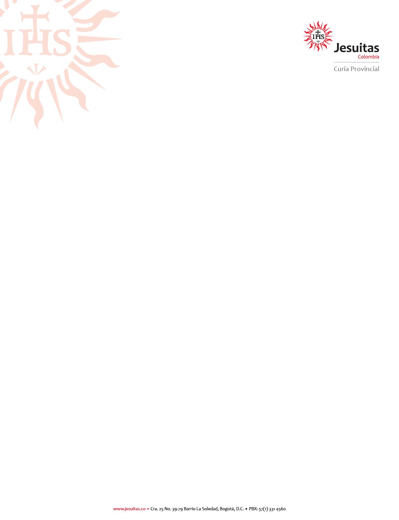 Quiero encomendarle a cada uno de los que aparecen en la lista, la misión de ser delegado vocacional en la obra o región de la cual forman parte. Su aporte será clave para la animación y el acompañamiento de los jóvenes que manifiestan la inquietud vocacional jesuita. Les encargo no sólo acompañar a los jóvenes que son remitidos por el equipo de la Misión Vocacional y trabajar de la mano con este equipo en las visitas regionales para afianzar los procesos de los inquietos vocacionales; su tarea también consiste en visibilizar la pregunta vocacional en las dinámicas cotidianas de las obras y regiones, así como de animar a la comunidad jesuita local en torno a reflexionar y proponer estrategias regionales de promoción que sean viables y articuladas Cuenten en todo momento con el apoyo metodológico del equipo de la Misión Vocacional y con acceso al material de promoción que la provincia elabora para la difusión de nuestra identidad y misión.