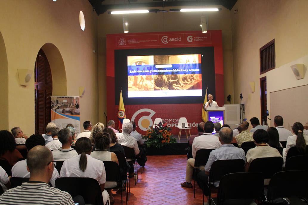 En el contexto de la Semana por la Paz y por iniciativa de la Universidad Militar Nueva Granada y de la Fundación Centro de Cultura Afrocaribe del Santuario de San Pedro Claver, se desarrolló los días 10 y 11 de septiembre el Seminario Internacinal “Esclavizaciones y emancipaciones históricas y actuales” en el Centro de Formación de la Cooperación Española, Claustro de Santo Domingo, en Cartagena. Fueron días de reflexión sobre las nuevas formas de esclavización, su marco histórico y los procesos de emancipación históricos y actuales.