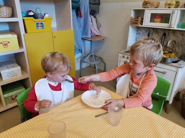 Els nens inenes de P2 2 han començat a dinar amb estovalles i a desenvolupar càrrecs (paren taula, reciclen...)