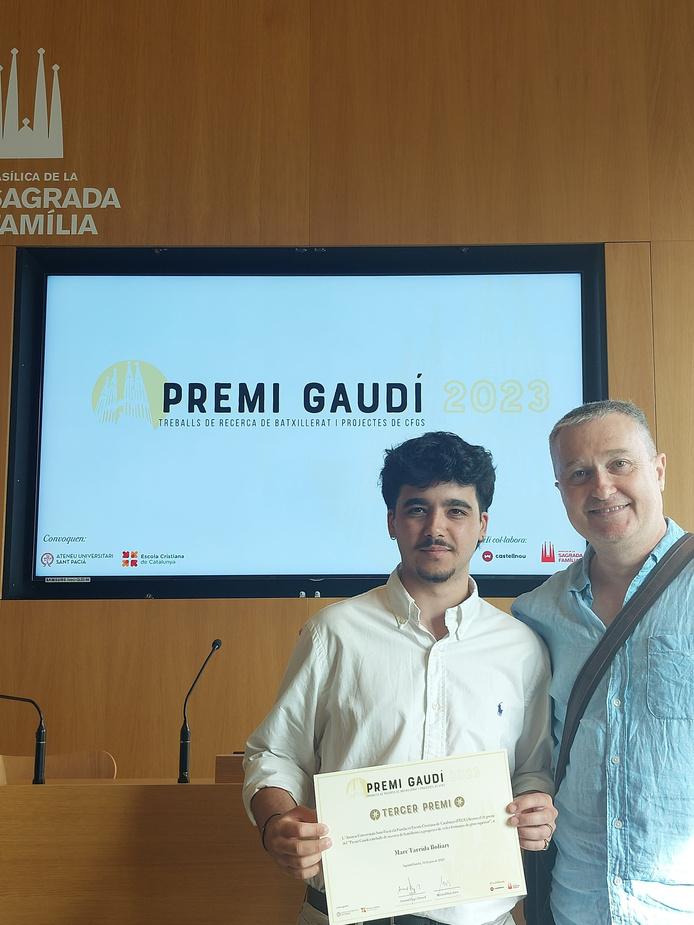 Marc Tarrida Boliart, alumne de 2n de Batxillerat, ha guanyat un premi en la segona edició dels premis Gaudí pel seu Treball de Recerca titulat Diversitat de creences i religions. El diàleg interreligiós, el camí a la convivència". El lliurament es va fer ahir a la Basílica de la Sagrada Família. El va acompanyar el seu tutor del Treball de Recerca, Toni Montilla.