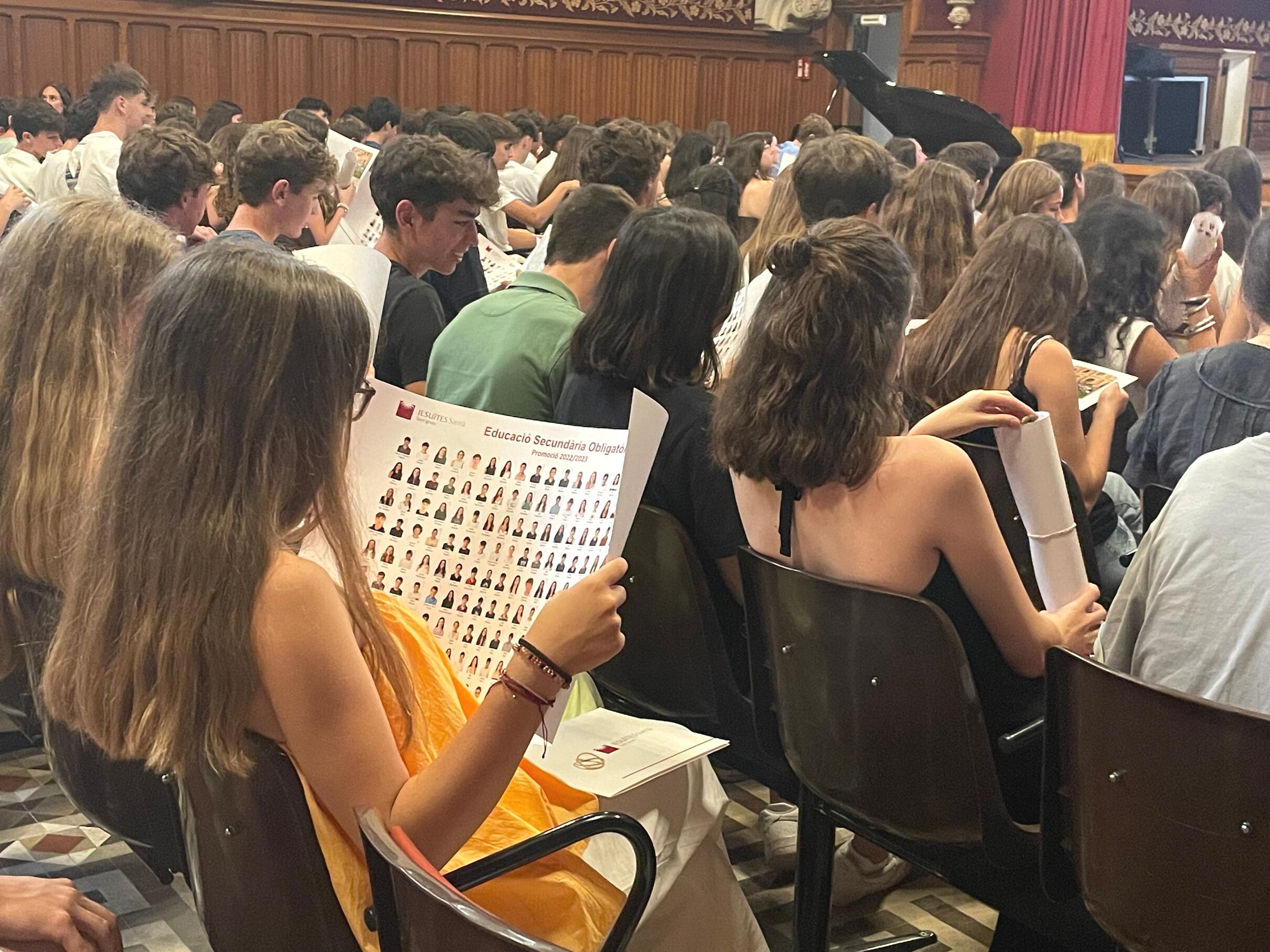 El passat 20 de juny, al saló d’actes de l’escola, els alumnes de 4t d’ESO van celebrar el tancament del curs i de l’etapa. L’acte va comptar amb la intervenció dels tutors, que els van adreçar unes paraules de bons desitjos per a la nova etapa que inicien; amb la intervenció dels alumnes delegats, que van recordar el seu pas per l’escola; i amb interludis musicals a càrrec dels alumnes. Per finalitzar es va lliurar l’orla de 4t.