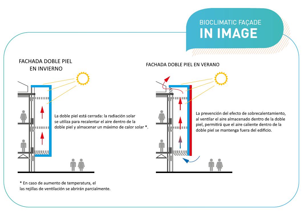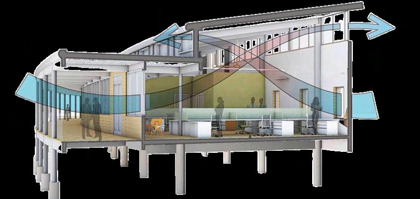 Elairefluyeatravésdelacavidadintermediaquese genera en el envolvente, que ayudara a mejorar la eficienciatérmicadeledificioenclimasfríosycálidos.