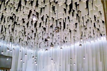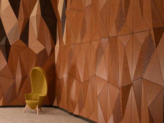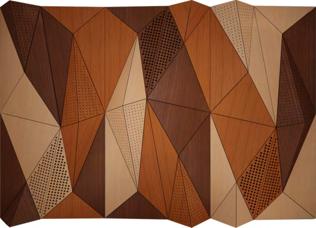La disposicion de estos en diversos ángulos permiten crear una composición única, jugando en el funcionamiento acústico con la mezcla correcta de los paneles sonidoabsorbentes y sonido-reflectores.