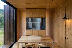 El característico volado de la construcciónenelaccesoprincipal, genera un área de convivencia protegidadelosfuertesvientosdel norte. Este gran volado de 15m integraloexteriorylointerior.