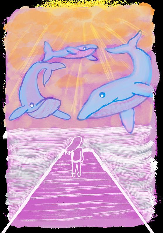 En ese momento el hermoso cielo se iba tornado oscuro. Más oscuro que una noche. Los demás animales marinos se veian borrosos con forme iba oscurecinedo. Solo estaba la familia de cetáceos y Emily sobre el Sr whalestone. Emily ya sabia que estaba despertando, pero tambien sabia, que esto no seria un hasta nunca.