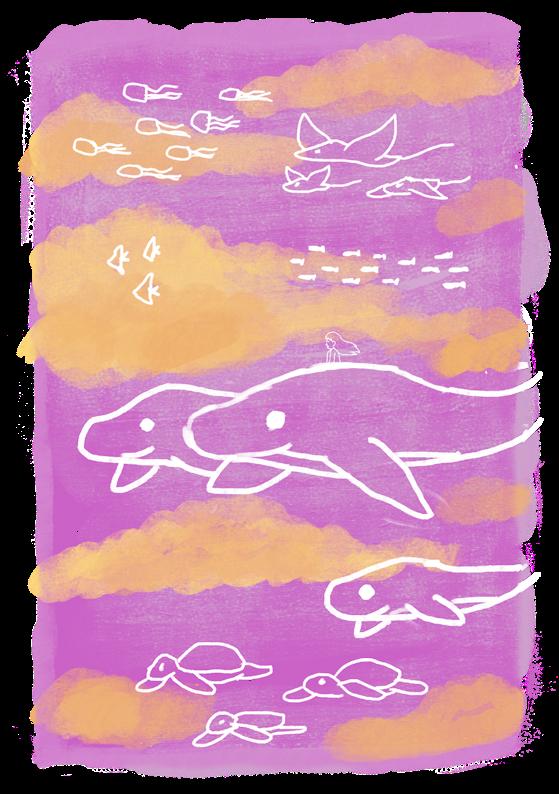 -¡Esto es estupendo! -Gritó Emily en el amplio cielo que cubria todo alrededor de la familia de cetáceos y demás animales -Pero, si esto es solo producto de mi imaginación ¿significa que tendre que despertar?