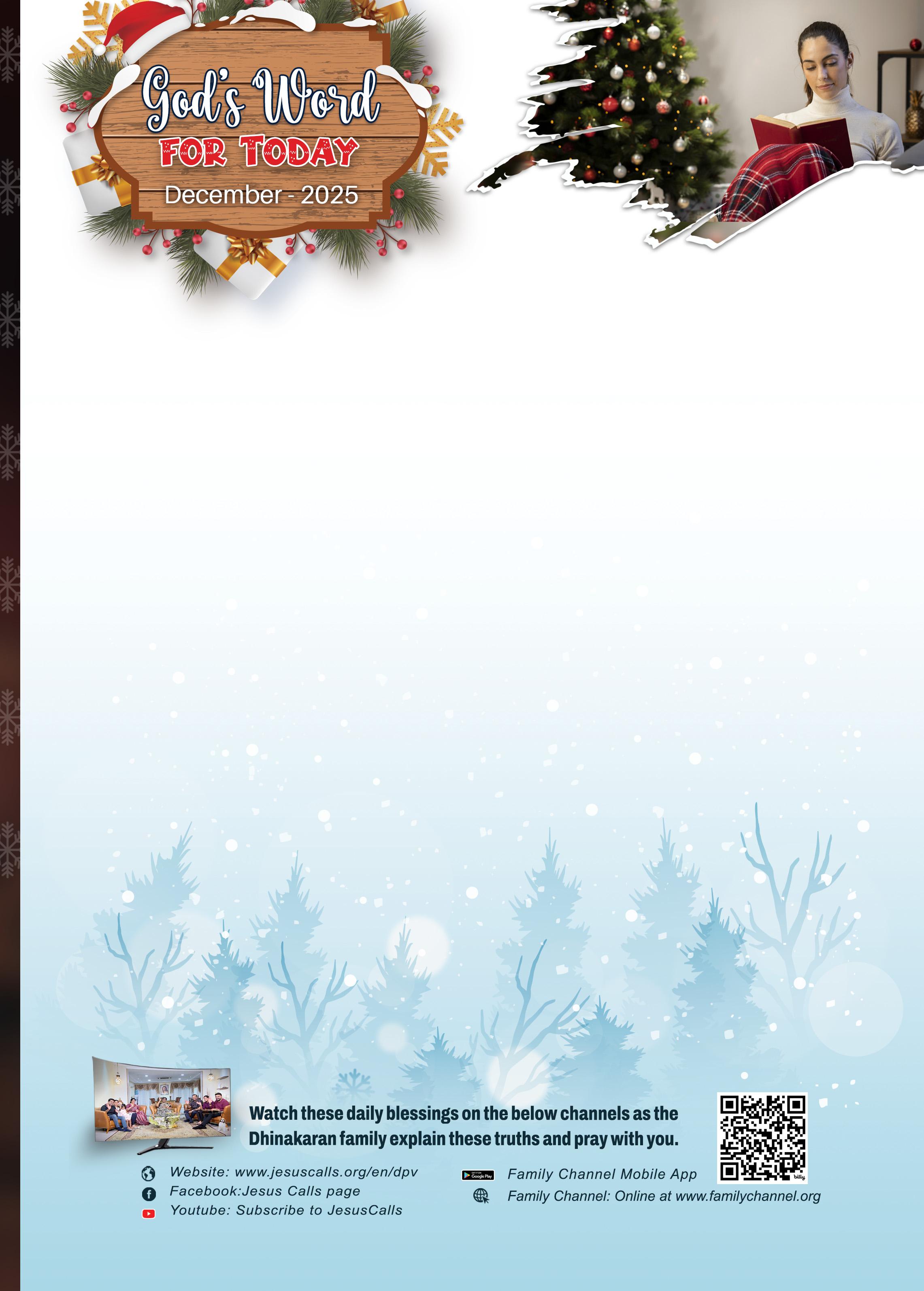 We make several plans and decisions to celebrate Christmas. But, do we desire to live a life in Christ, which is pleasing to Him? How to receive this divine life? – Shall we analyze this on the basis of the Scriptures and truly enjoy celebrating Christmas, by following these in all reverence and in holiness?