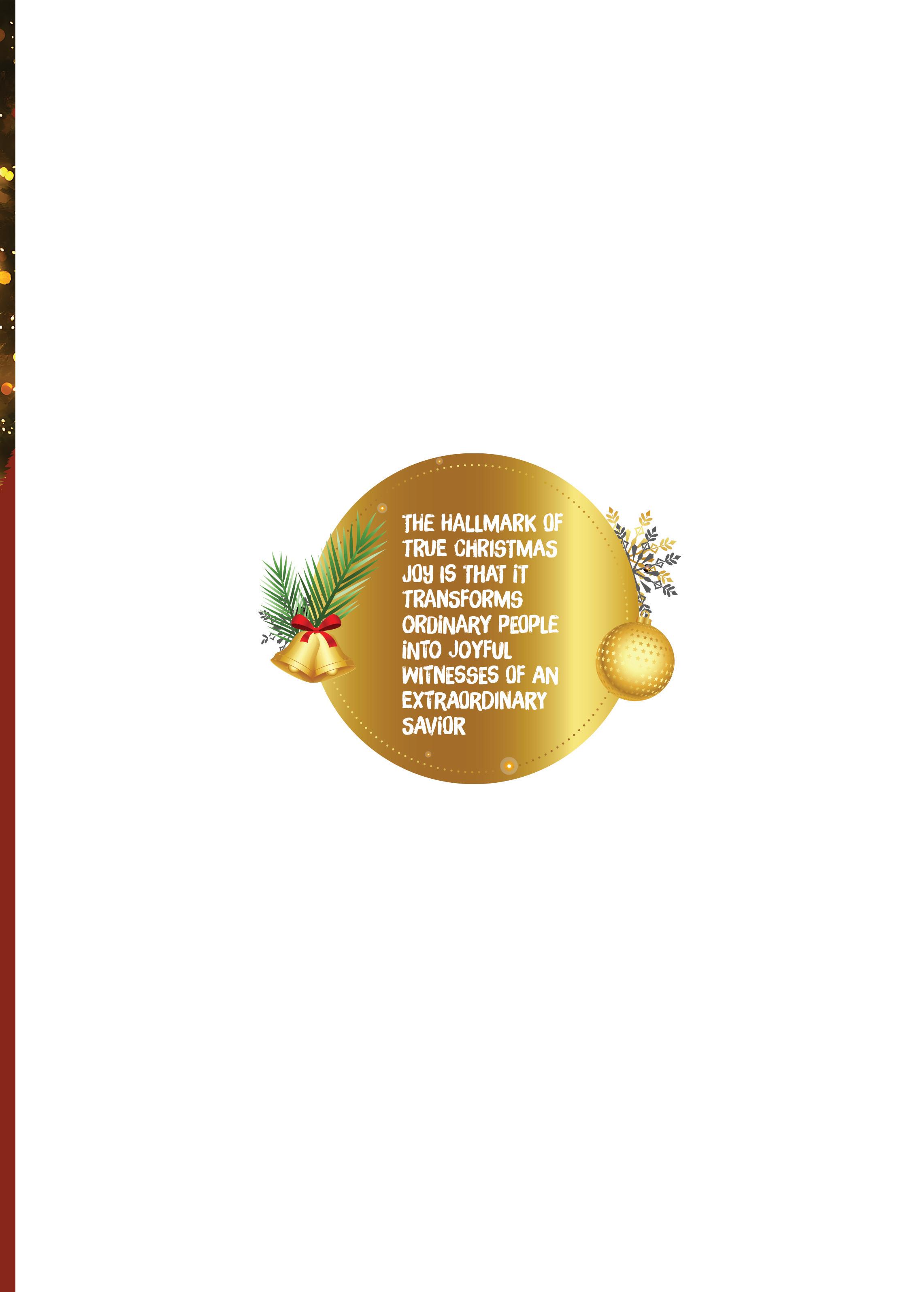 that establishes our eternal identity as heirs with Christ. The world often measures happiness by possessions, status, or success, but Christmas joy is far greater. It assures us that the King of kings has chosen to dwell among us. Because of His birth, we share in His royal inheritance, a kingdom that cannot be shaken. This is why no person, circumstance, or sorrow can take away the joy that Jesus gives.