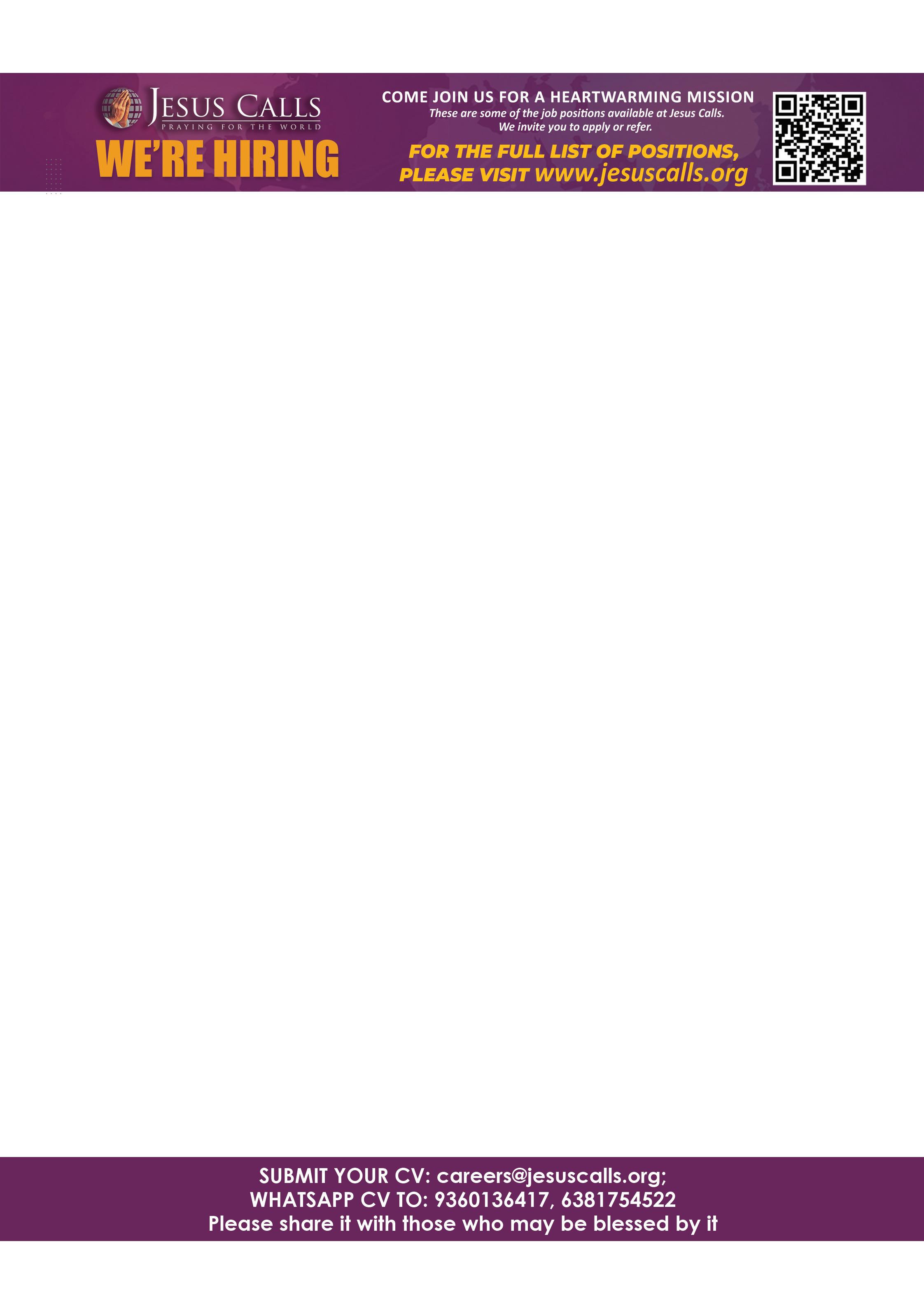 For more details and to enroll, visit: www.jesuscalls.org/donate/fbp or call 04423456677 (8AM to 8PM)