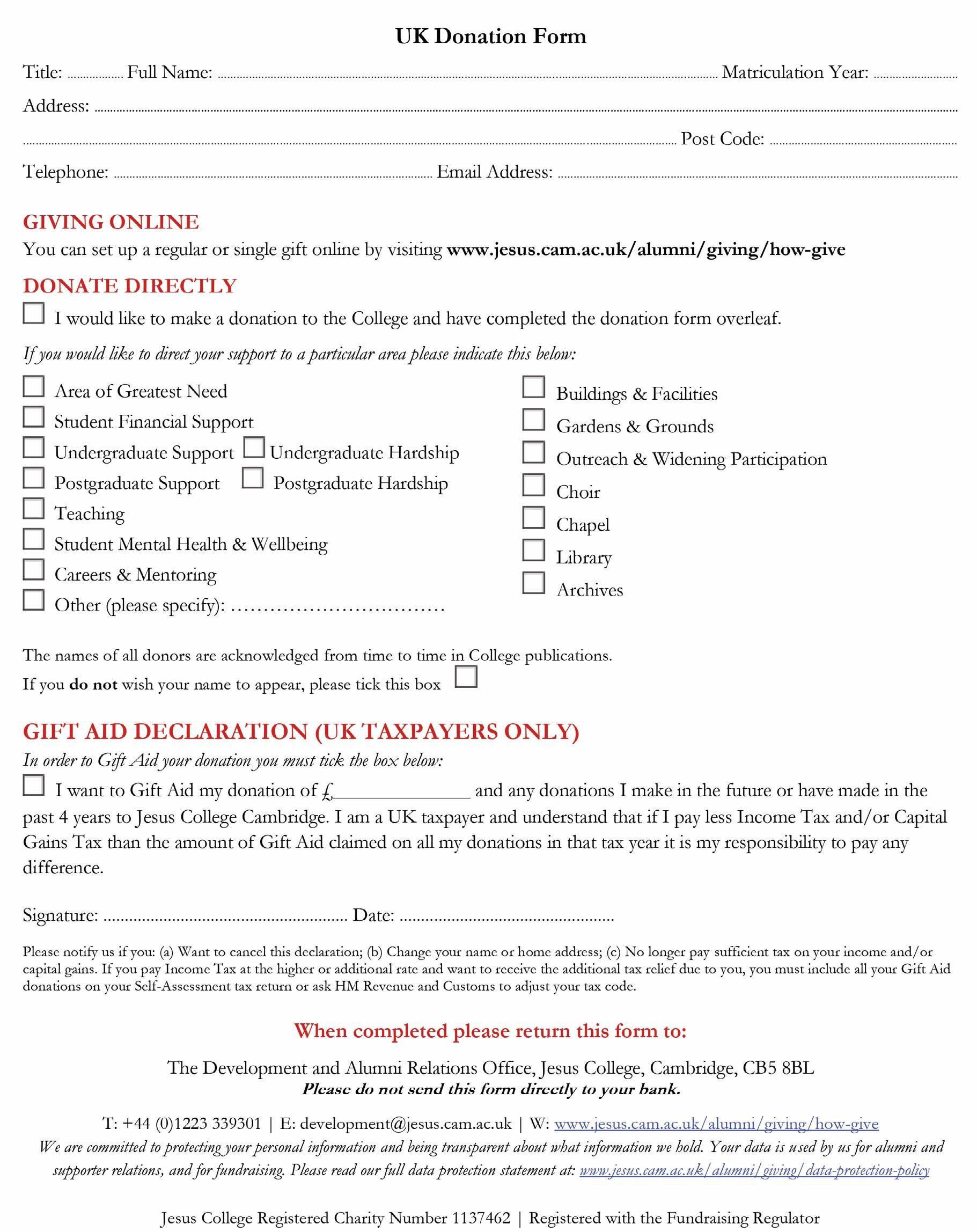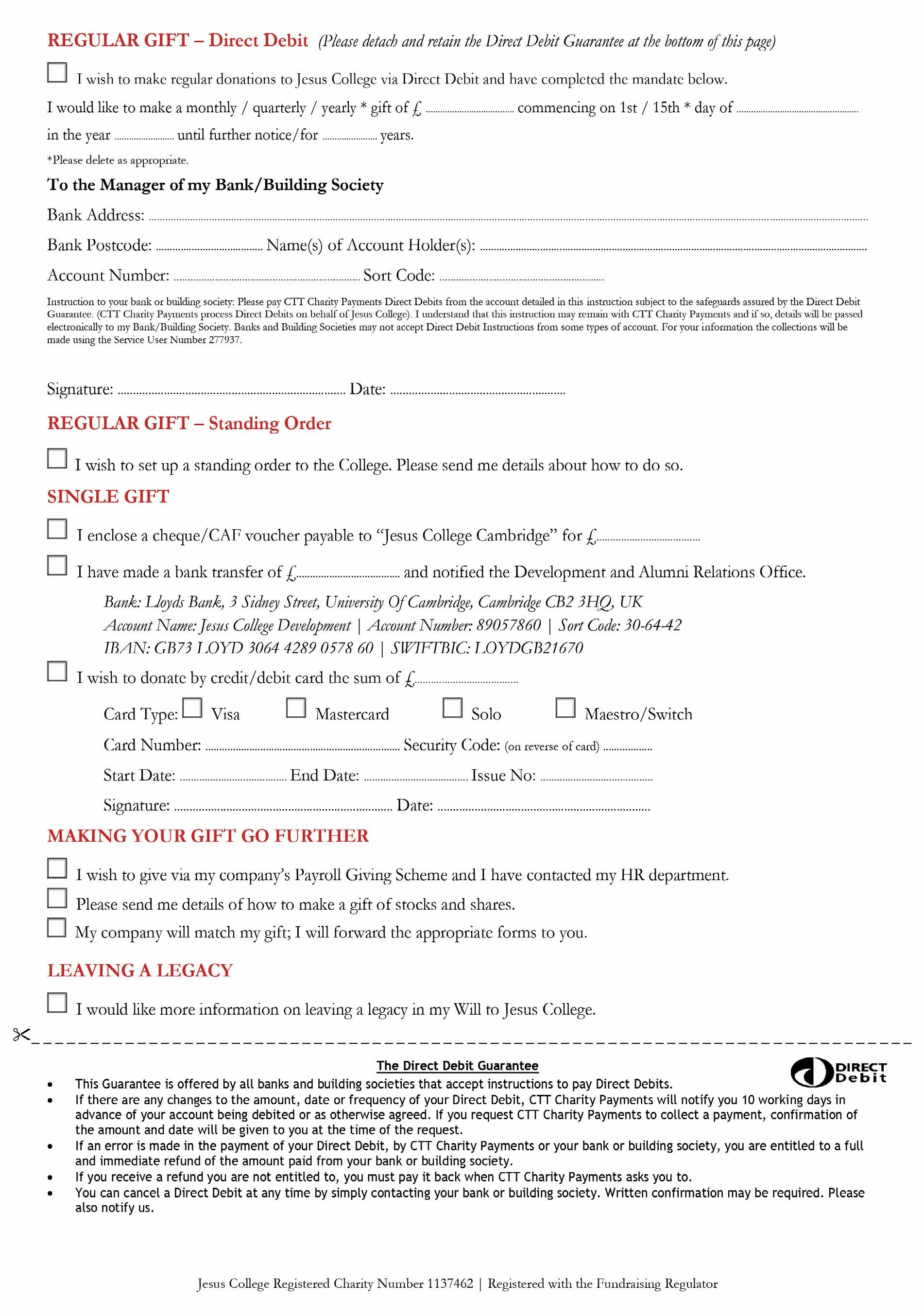 The Development and Alumni Relations Office Jesus College Cambridge CB5 8BL e-mail: development@jesus.cam.ac.uk