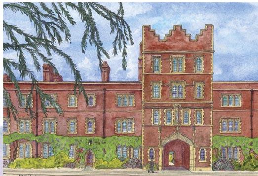 Well known Cambridge artist Naomi Davies (née Williams, 1987) has created various pen and watercolour paintings of the College which are available as limited edition prints, tea towels, coasters and greetings cards.