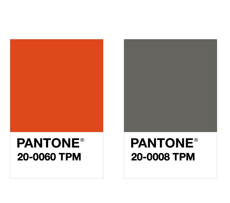 RGB 232, 78, 27 HSV 4, 80, 95 CMYK 0, 79, 94, 0 LAB 54, 67, 50 RGB 111, 111, 110 HSV 0, 0, 38 CMYK 0, 0, 0, 70 LAB 41, 0, 0