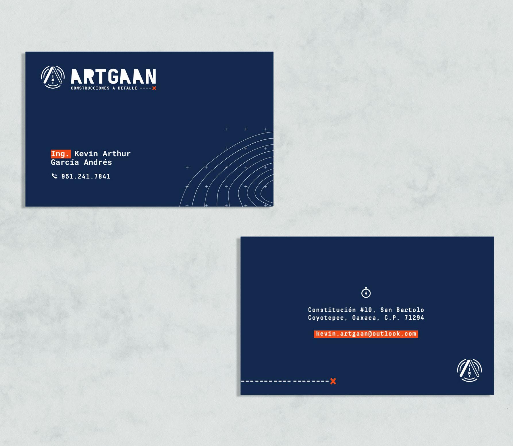 A través de la identidad de ARTGAAN, se busca comunicar calidad, solidez, limpieza, innovación, seguridad y eficacia. El tipo de trazos y estilo que se eligieron son abstractos y minimalistas. El logotipo está acompañando del nominativo “construcciones a detalle” con el cual se busca comunicar que en ARTGAAN se presta especial atención al detalle de cada proyecto.