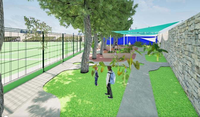 Propuesta de adecuación de bodega olvidada en cancha de fútbol. Se propuso un huerto con temática pedagógica enfocada en alumnos de secundaria, para concientizar sobre el cuidado del medio ambiente.
