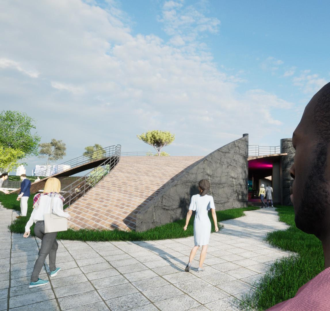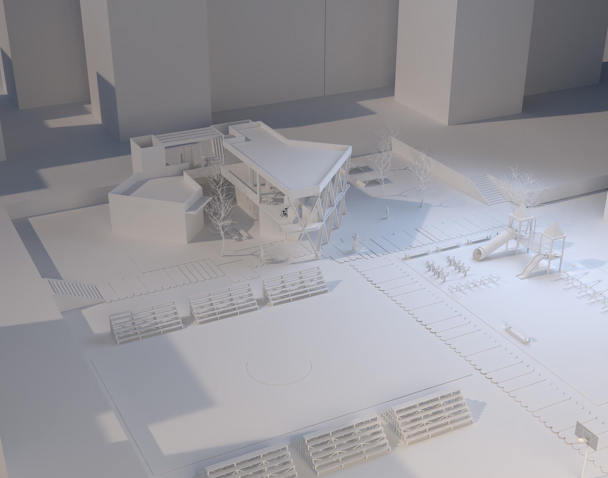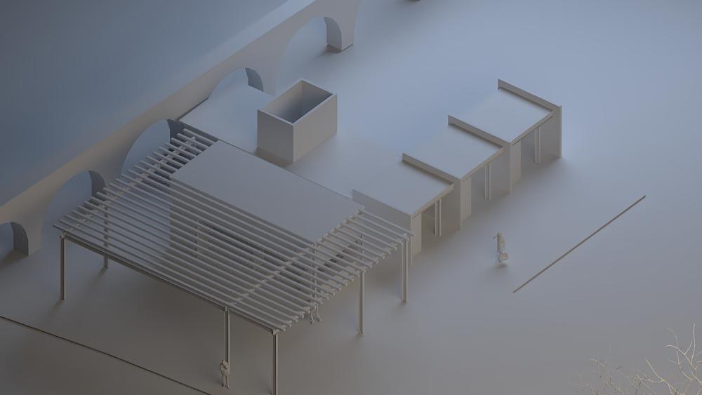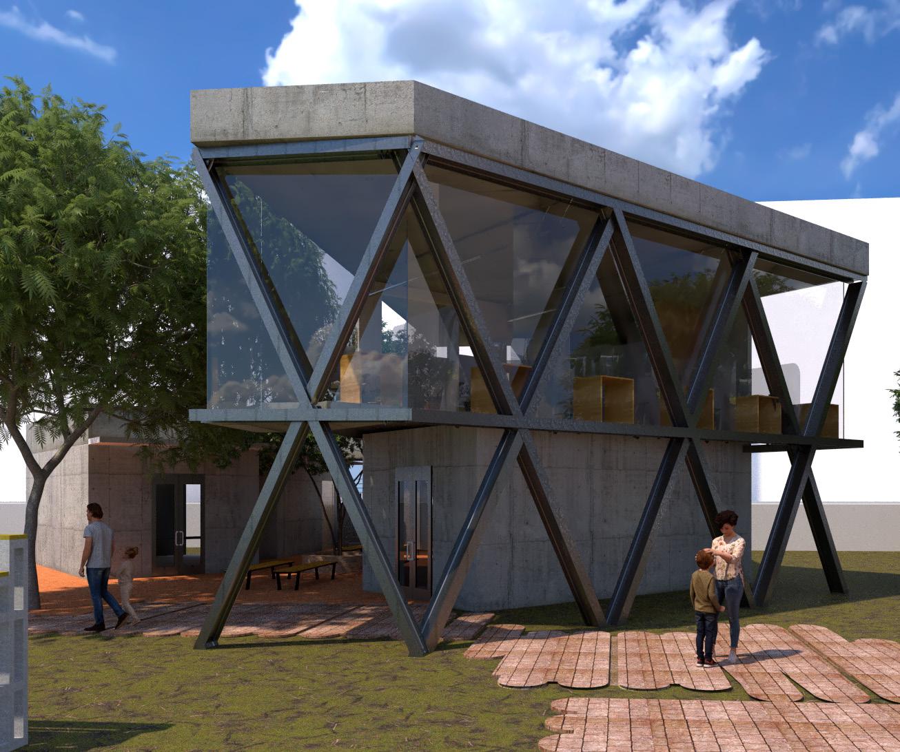 Ganador dentro del Nivel en el Taller “Carlos Lazo” de la Facultad de Arquitectura de la UNAM. Se propone un pabellón que define espacios virtuales, para que el estudiantado pueda hallar en él, un espacio de reunión.