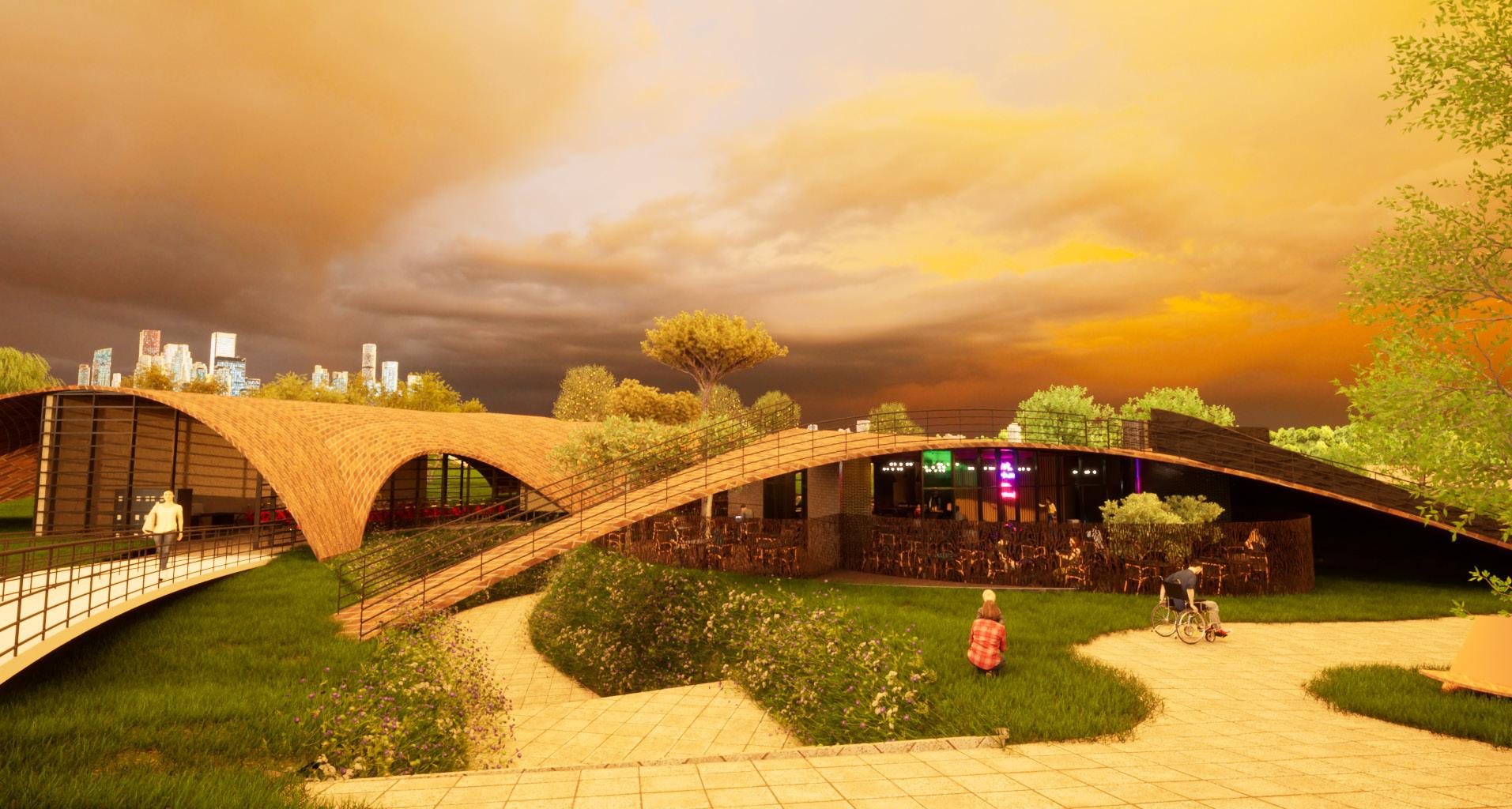 Paradero que funciona como medio de descanso dentro de la segunda sección de Chapultepec con comedor, guarda de bicicletas, y explanada.