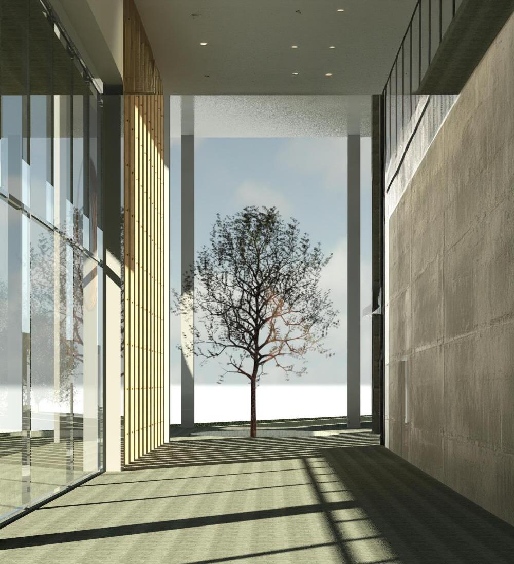 The plinth was designed using the same squared grid and curved lines were added with which there was the opportunity to create figures and spaces, this gave a completely new design that contrasts the facade, after creating the figures then it was adapted the program giving the same importance and emphasis to the interior and exterior spaces using a program checkering order and courtyards, an access and direct path was made that connects to the Olive Walk to be able to use the route inside the plinth from end to end where it is accessed to the plaza and you can decide freely and efficiently where to go, also promoting the view of the Japanese garden. The design of the tower and facade are intended to have the same pleasure of being inside and outside.