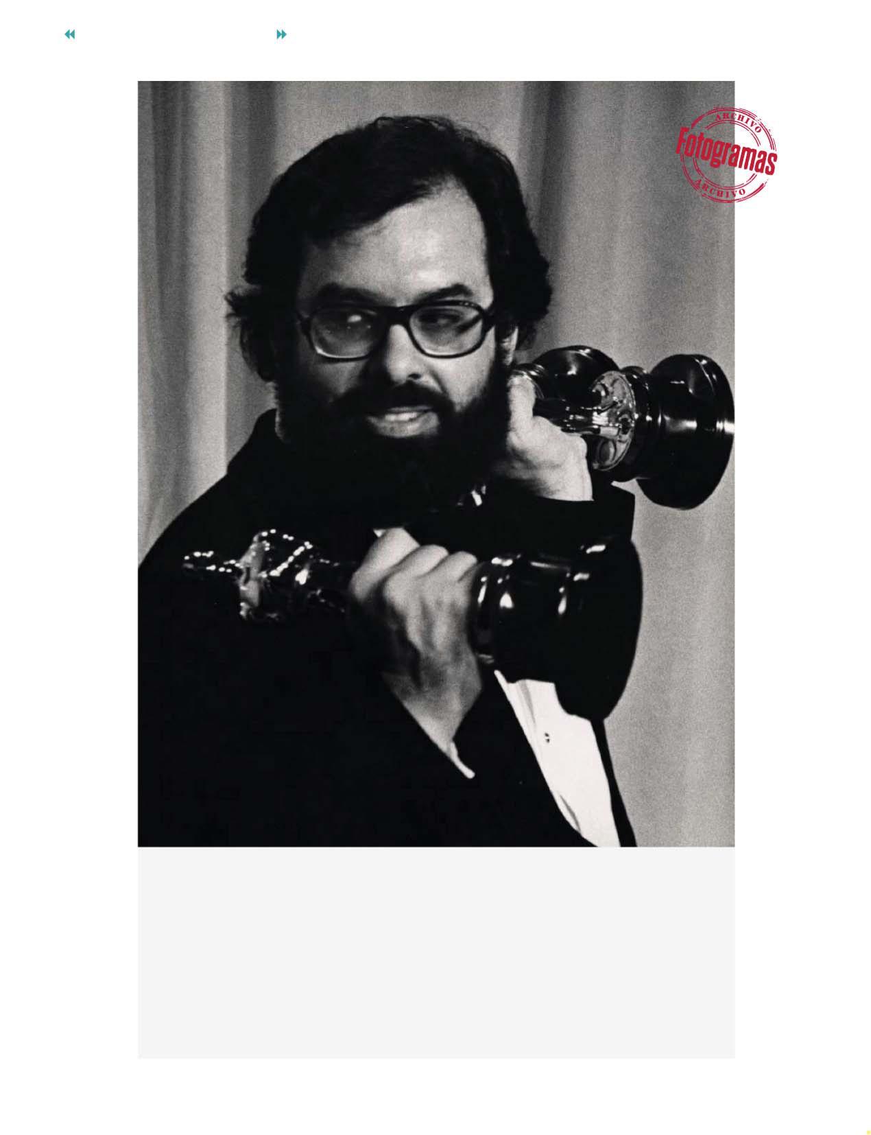 Cincuentenario feliz. Los Ángeles, 27 de marzo de 1973. Francis Ford Coppola posa con los Oscar a Mejor Película y Mejor Guion Adaptado que consiguió El Padrino, junto con el de Marlon Brando como Mejor Actor, quien no acudió a la ceremonia. Pero aquella noche también subió al escenario del Dorothy Chandler Pavilion el aragonés Luis Buñuel, que recogió la estatuilla por El discreto encanto de la burguesía como Mejor Película de Habla No Inglesa, que competía bajo bandera francesa. Entre los nominados de aquel año figuraba Mi querida señorita, de Jaime de Armiñán, en representación de España. El próximo 12 de marzo, 50 años después, se celebra la 95.ª edición de los Oscar de la que hablaremos en el siguiente número. ◆