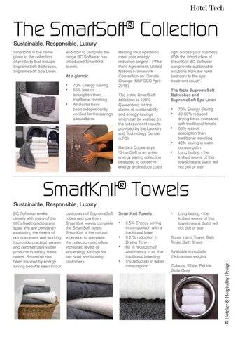 right across your business. With the introduction of SmartKnit BC Softwear can provide sustainable solutions from the hotel bedroom to the spa treatment couch’. The facts SupremeSoft Bathrobes and SupremeSoft Spa Linen