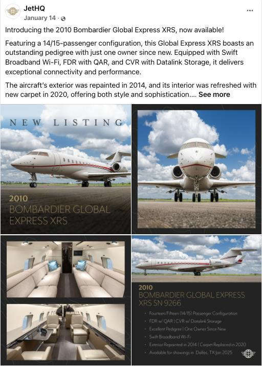 JetHQ maximizes exposure of your aircraft by using multiple industry platforms, events and social media outlets. Below are some examples of previous email campaigns and social posts created as an example of how we will market your aircraft.