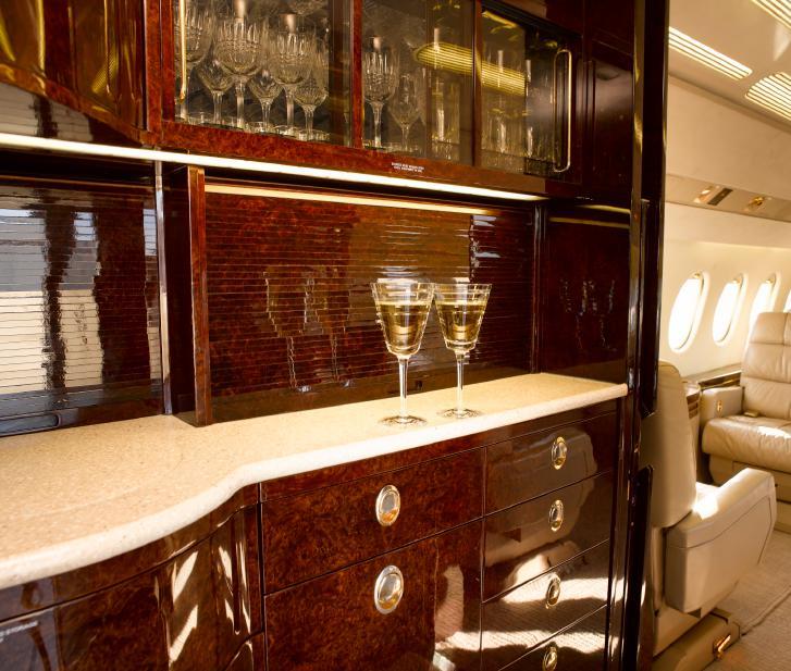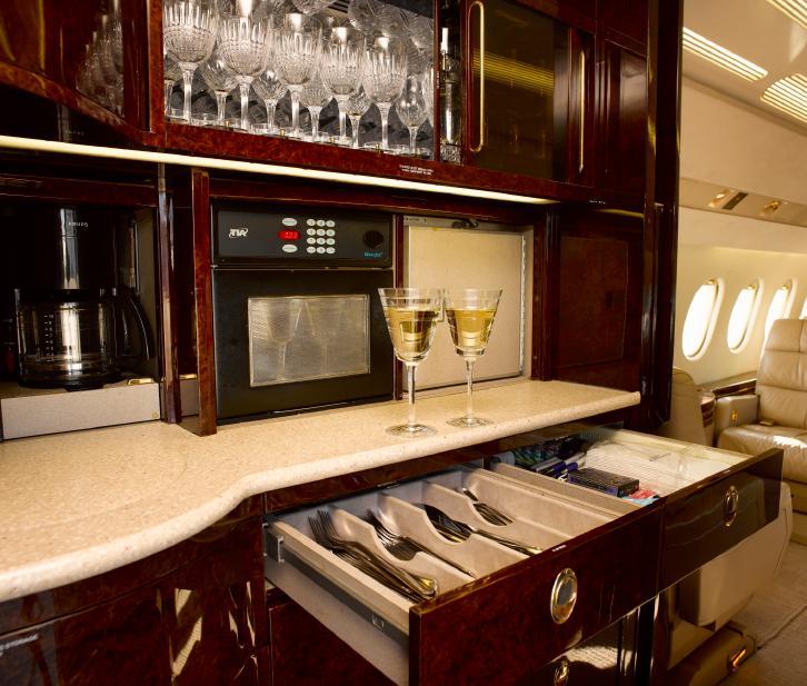 Forward Full-Service Galley w/ Oven; Microwave; Coffee Maker; Dual (2) Coffee Carafes; Dual (2) Ice Drawers; Pop-Out Work Surface; Sink w/ Faucet; Dedicated China/Cutlery/Crystal Storage