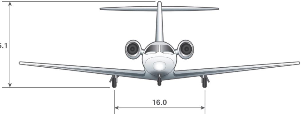MODEL NAME CITATION CJ3 EMBRAER PHENOM 300 Fuselage Dimensions Length 51.2 (ft) 51.2 (ft) Height 15.2 (ft) 16.7 (ft) Wing Span 53.4 (ft) 52.2 (ft) Cabin Dimensions Length 15' 8'' (ft)(in) 17' 2'' (ft)(in) Height 4' 9'' (ft)(in) 4' 9'' (ft)(in) Width 4' 10'' (ft)(in) 5' 1'' (ft)(in) Cabin Volume 286 (cb ft) 324 (cb ft) Baggage Volume 65 (cb ft) 85 (cb ft) Typical Configuration Crew 1 1 Passengers 7 7 Pressurization 8.9 (psi) 9.4 (psi) Fuel Capacity Standard 703 (gal) 799 (gal) Weight Max. Ramp 14,070 (lbs) 18,497 (lbs) Max. Takeoff 13,870 (lbs) 18,387 (lbs) Zero Fuel 10,510 (lbs) 14,220 (lbs) Basic Operating 8,790 (lbs) 11,583 (lbs) Max. Landing 12,750 (lbs) 17,042 (lbs)