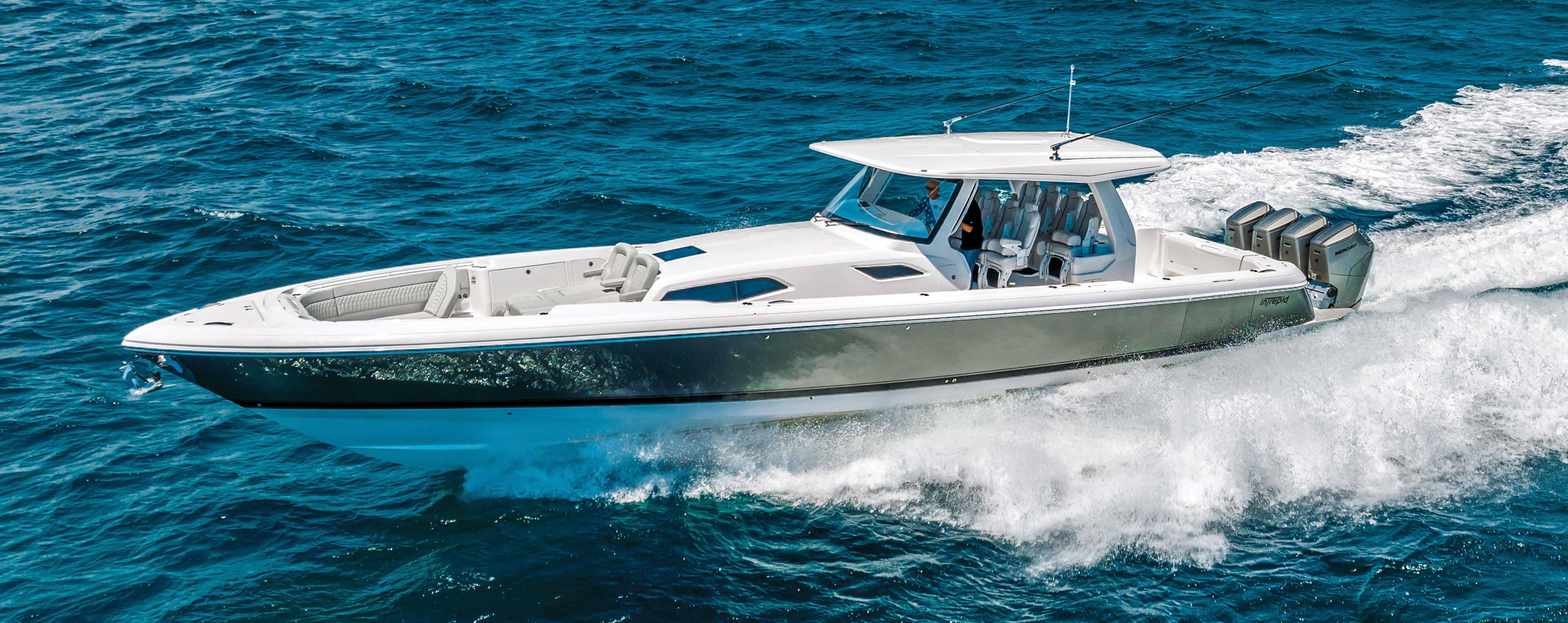 Imagine roaring in the BVI in the one-of-a-kind comfort and style found only on an Intrepid built expressly for you. Our biggest boat yet, the expansive topside and roomy cabin can be appointed with every imaginable state-of-the-art feature and luxurious amenity you desire.