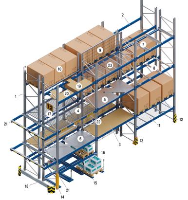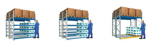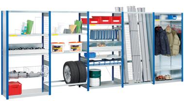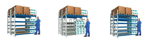Shelving systems are mainly used for storing and picking non-palletised loads, loose goods stored in bins and cartons or packaging units that can be handled manually in terms of dimensions and weight. A wide range of accessories can be added later on component.