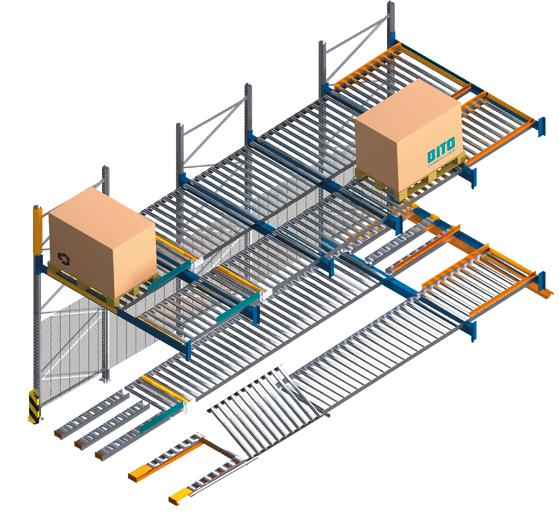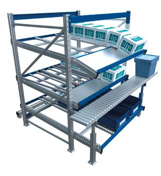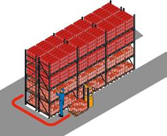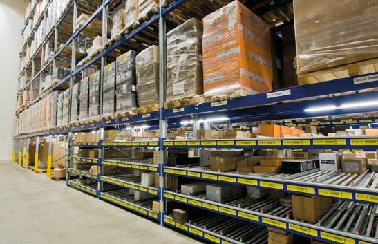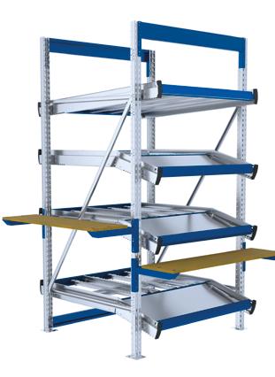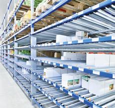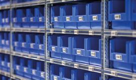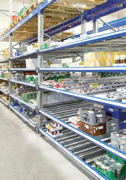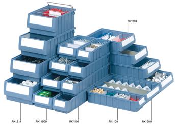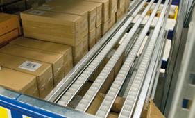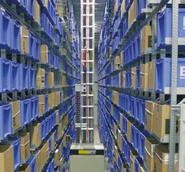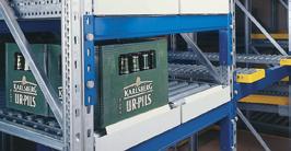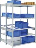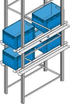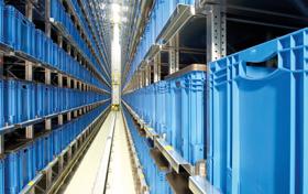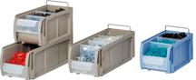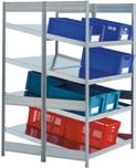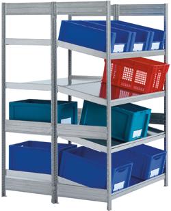 EMB containers are per fect for use in shelving with inclined shelves and in carton live storage installations