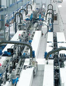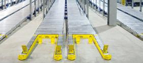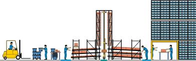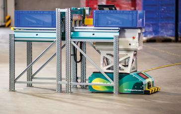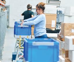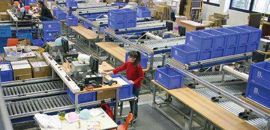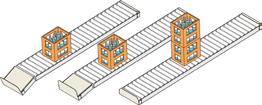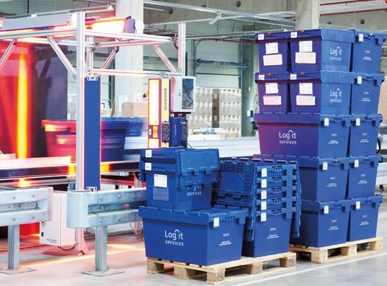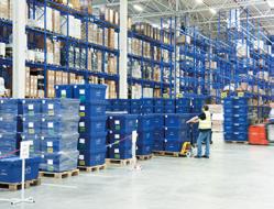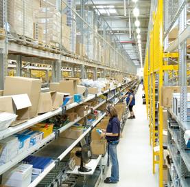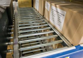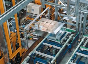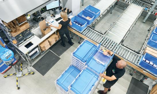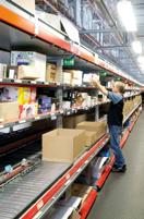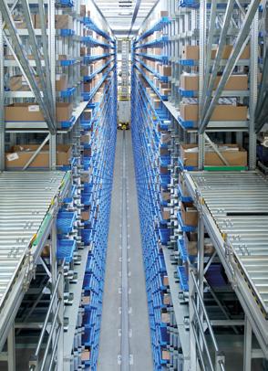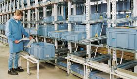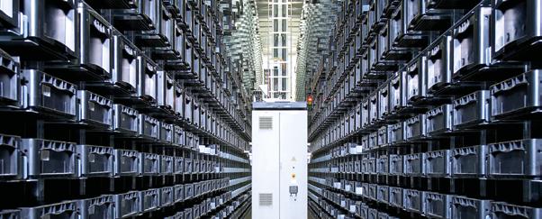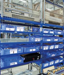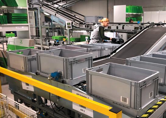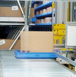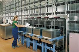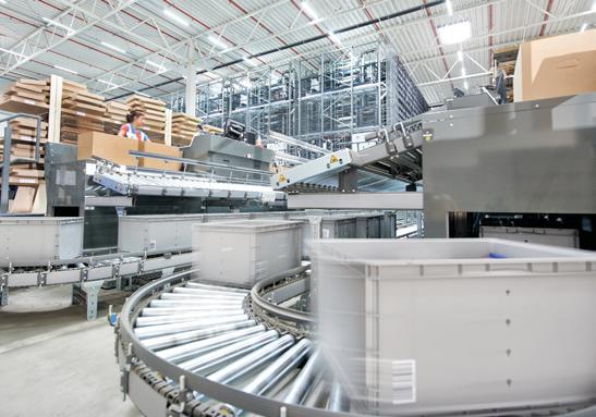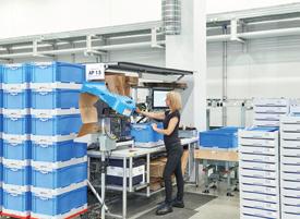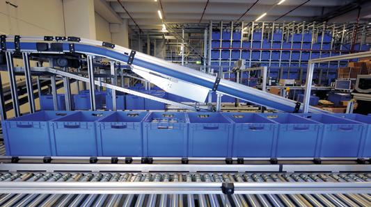 EQ containers for use throughout the entire operating process from goods receipt to order picking Container buf fering in the automated shuttle warehouse Roller conveyors connect the work areas with the automated warehouse