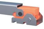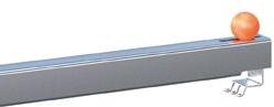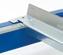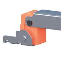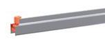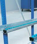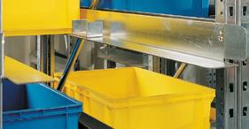 The safety/carr ying handle allows bins to be tilted forward and prevents them from being pulled out of the shelving by accident.