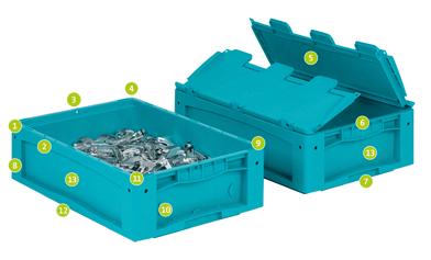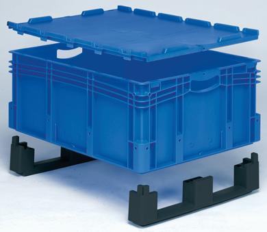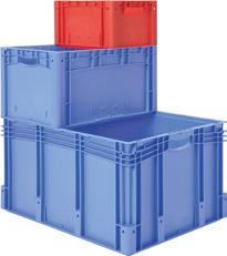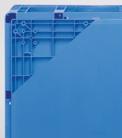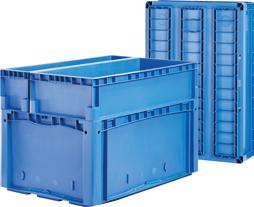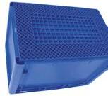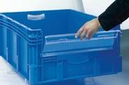 The EQ variant with ribbed base is suited for automated storage Easy and ergonomic container handling without risk of injur y, especially during manual folding High load capacity and smooth traveling on conveyor systems