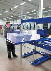 Folded boxes require only a quarter of the unfolded space during storage and transport Damage-free transport of the goods from the conveyor system to the packing stations