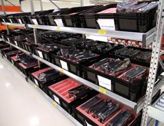 For their automated warehouse, Hammer required approximately 60,000 rugged containers suited for automated systems, which were to run as quietly as possible on the system, have a large internal volume, and can be subdivided to make best use of the bin volume.