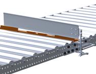 The product feeder panel prevents items from spilling out when the bin is in an inclined position.