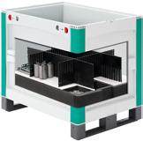 logit.syncreon is a globally operating third-party logistics provider (3PL). The company designs and operates supply chain solutions for customers from almost any business secsolutions, warehousing, manufacturing support and assembly ser vices, transportation and returns management. Until now, high-tech equipment was transported in (often too large) disposable cardboard boxes or without packaging in wire mesh boxes. The customer wanted to store and transport their products in a safe way without risk of damage while at the same time avoiding or reducing packaging waste for economic and ecological reasons. In addition, the containers had to match the size of a Europallet.