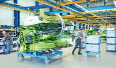 The Claas Group is a leading global manufacturer of agricultural engineering equipment. Machines are developed, tested and manufactured at the Claas Saulgau GmbH. As the product portfolio and parts variety have grown continuously over the years, room for parts stockkeeping has become increasingly scarce. The huge variety of reference lines and the heavy weight of a lot of components, which are to be provided directly at the assembly lines in a space-saving way, also had to be taken into account. In addition, partially assembled modules from upstream suppliers must also be available at the assembly line.