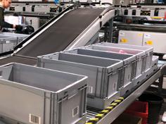 EQ containers have excellent, low-noise conveying properties on conveyor lanes Ergonomic working environment for the employees
