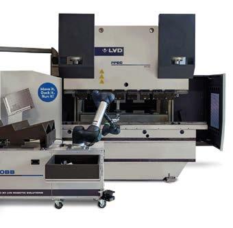 Ricobb is compact en gebruiksvriendelijk en is gemakkelijk te verplaatsen, in te stellen en te programmeren. In elke dagen tijd is het systeem geïnstalleerd, getraind en volledig operationeel. Ricobb is een mobiele, veelzijdige cobot. Gekoppeld aan een afkantpers, neemt hij het plooien van kleine, eenvoudige onderdelen over en kan hij snel worden overgezet naar een andere machine wanneer de productie erom vraagt. Na het aankoppelen herkent Ricobb automatisch de afkantpers, waardoor verplaatsen snel en eenvoudig verloopt. LVD
