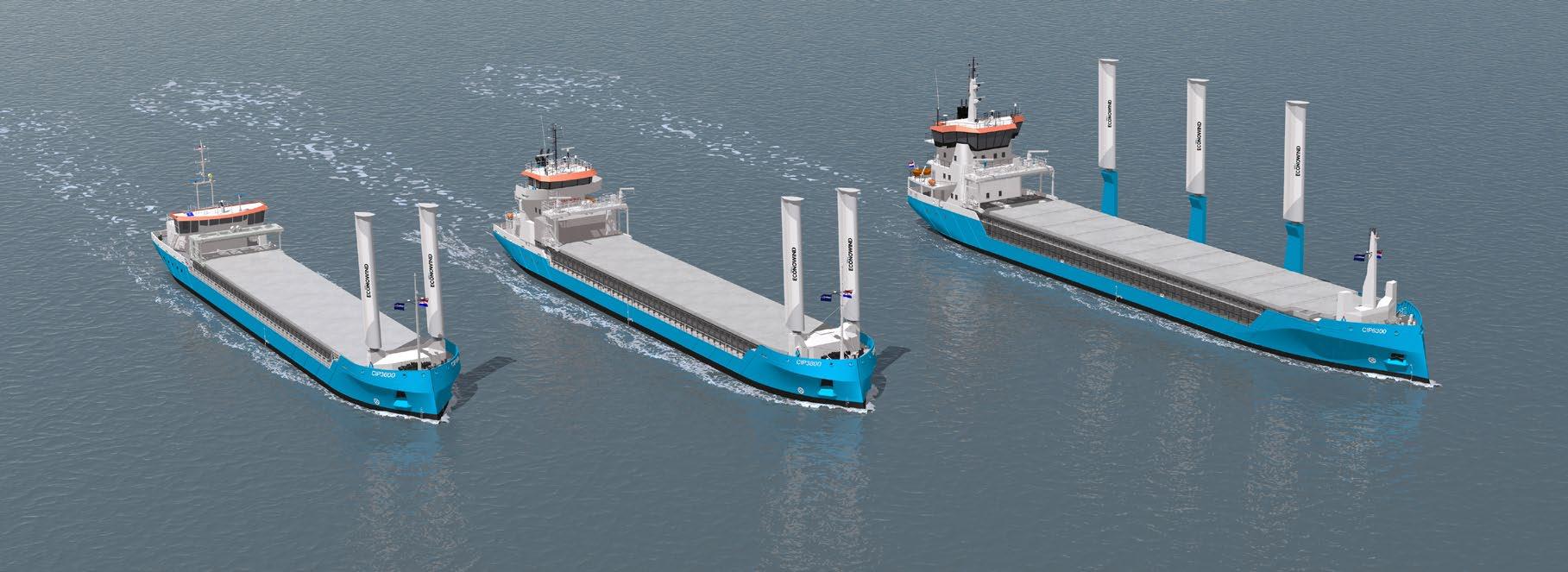 Tekst en foto’s Ed Coenenimpression van in Groningen ontworpen kustvaarders met VentoFoils van