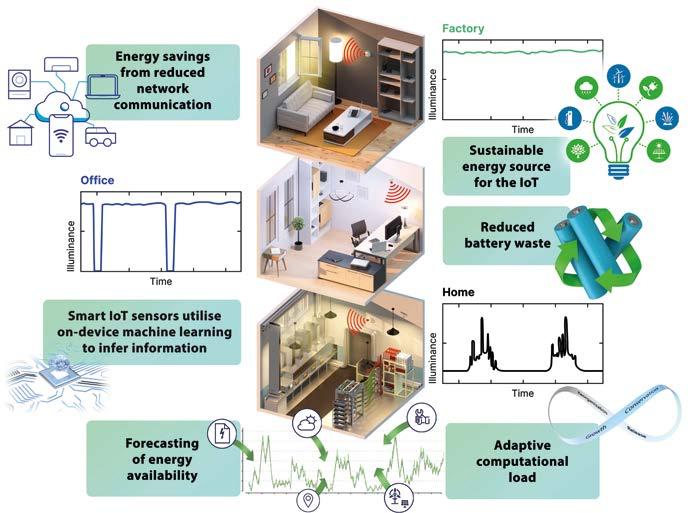 Het oogsten van energie uit omgevingslicht en kunstmatige intelligentie brengen een revolutie teweeg in het internet der dingen. Op basis van een slimme en adaptieve bediening wordt het energieverbruik van sensorapparaten verminderd en wordt batterijverspilling voorkomen. Foto door Ella Maru Studio.