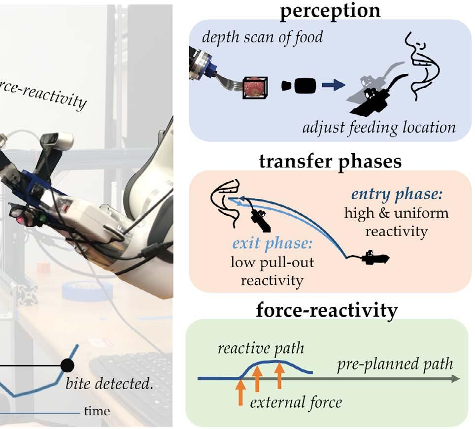 Een onderzoeksteam aan de Stanford University hoopt robotondersteuning voor voeding comfortabeler te maken voor alle betrokkenen. Het team heeft nu verschillende nieuwe robotalgoritmen ontwikkeld om autonoom en comfortabel elke stap van het voedingsproces voor een verscheidenheid aan voedselsoorten uit te voeren. Eén algoritme combineert computervisie en haptiek om de hoek en snelheid te evalueren waarmee een vork in een voedingsmiddel moet worden gestoken; een ander gebruikt een tweede robotarm om voedsel op een lepel te duwen; en een derde brengt voedsel in de mond van een persoon op een manier die natuurlijk en comfortabel aanvoelt.