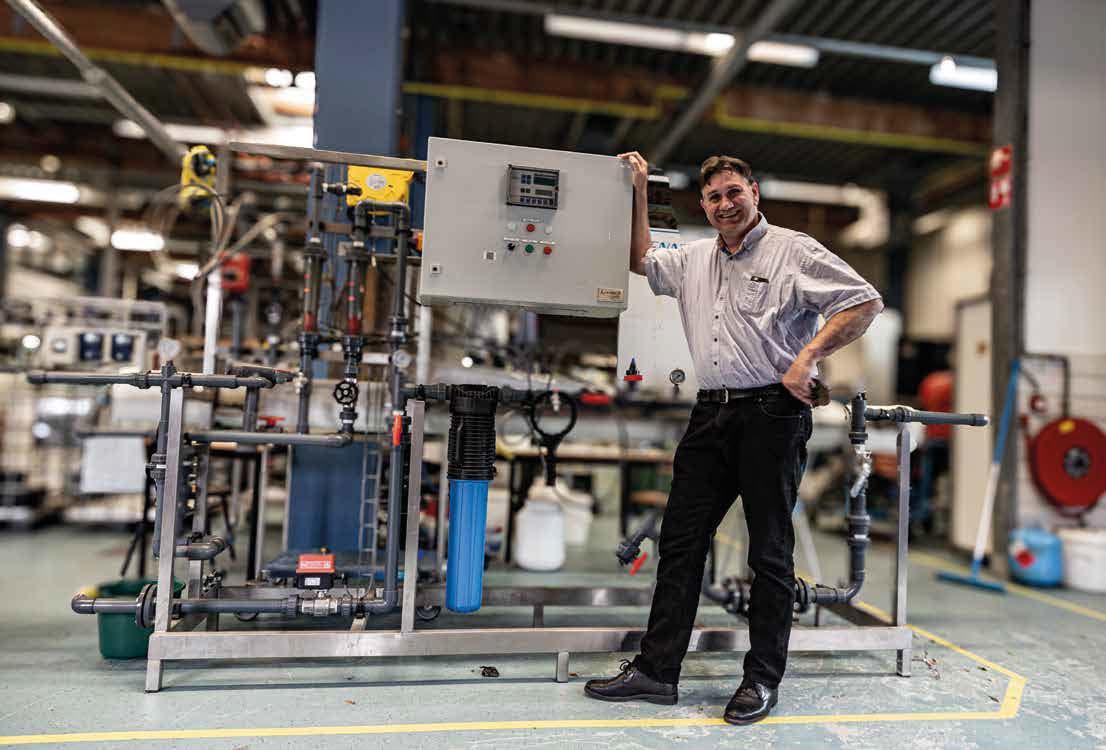 stelt André Mepschen, inmiddels zes jaar in dienst bij Water Alliance als business development manager Water Alliance is onderdeel van de WaterCampus Leeuwarden, een samenwerkingsverband tussen overheid, kennisinstellingen én het bedrijfsleven. Het heeft drie managing par tners: Wetsus, het Europees exper tisecentrum voor duurzame water technologie, waar fundamenteel onderzoek plaatsvindt, CEW, het werk- en leercentrum voor toegepast onderzoek naar vraagstukken uit de hele waterketen en Water Alliance,