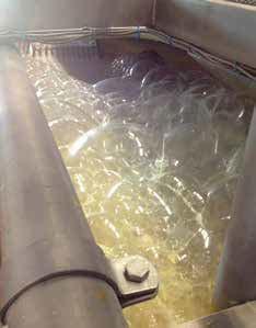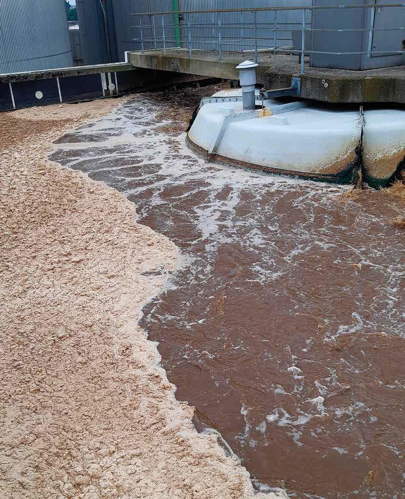 grote volumes kan door de agitatie van het proceswater een enorme hoeveelheid schuim ontstaan. “Als dat niet goed wordt bestreden, kan het voor grote problemen zorgen”, ver telt Rober t Huizenga. “Een vloer vol schuim kan gevaarlijke werksituaties voor operators opleveren. Daarnaast raken bedieningspanelen en machines vervuild, en als schuim in een centrifugaalpomp komt, kan het schade veroorzaken aan de schoepen en het pomphuis.” Ook in de waterzuivering van fabrieken kan schuim problemen veroorzaken. “Zonder anti-foamstrategie bestaat de kans dat de hele installatie onder het schuim komt, dat vervolgens alle kanten opwaait. Door een dikke schuimlaag komt er bovendien onvoldoende zuurstof in het afvalwater, met negatieve impact op het zuiveringsproces.”