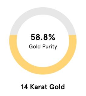 Contains 58.3% pure gold and 41.7% alloy metals. Preferred for its durability while still maintaining a significant gold content.