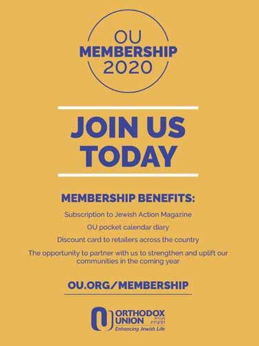 Jewish Action seeks to provide a forum for a diversity of legitimate opinions within the spectrum of Orthodox Judaism. Therefore, opinions expressed do not necessarily refect the policy or opinion of the Orthodox Union.