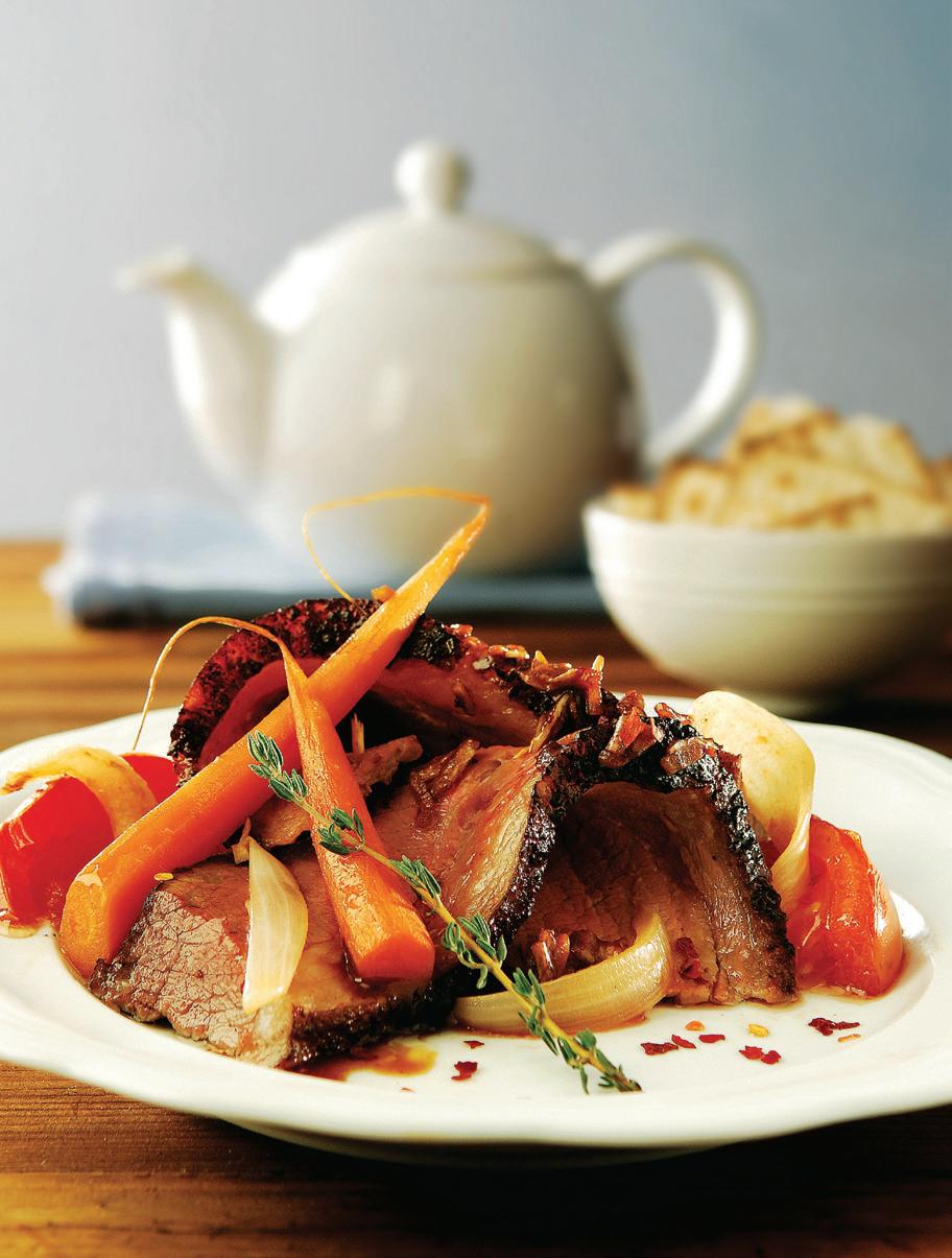 Vegetarian options, Mediterranean meat and potatoes, wine and table settings
