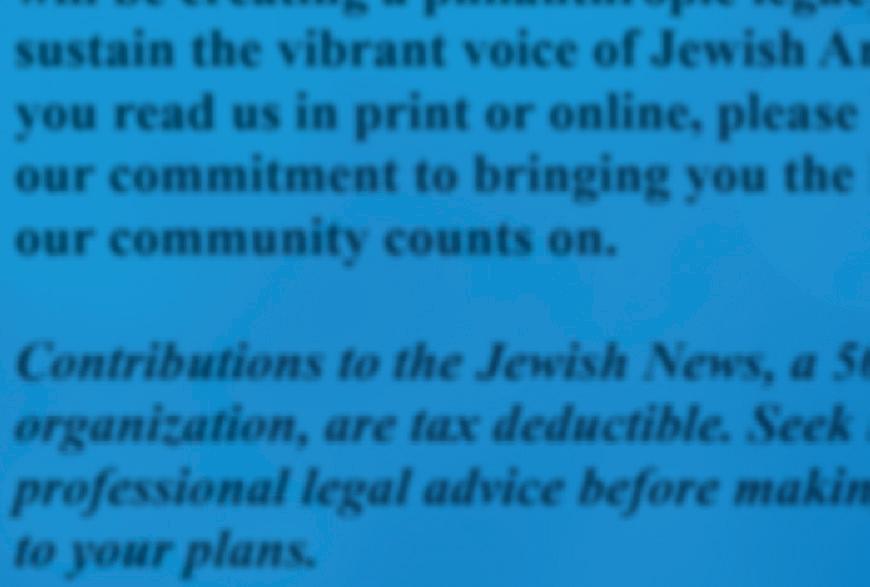 By making the Jewish News a beneficiary of your will, trust, retirement account or life insurance policy, you will be creating a philanthropic legacy that will help sustain the vibrant voice of Jewish Arizona. Whether you read us in print or online, please help us continue our commitment to bringing you the local Jewish news our community counts on.
